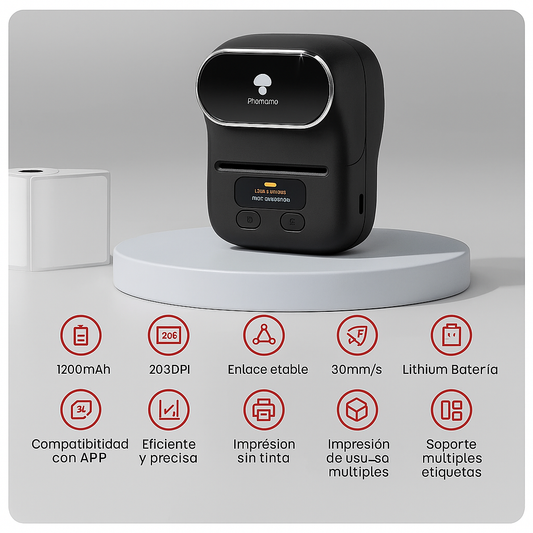 Phomemo® M110 – Mini impresora + 4 Rollos Gratis | Etiqueta como un profesional, no necesita tinta.