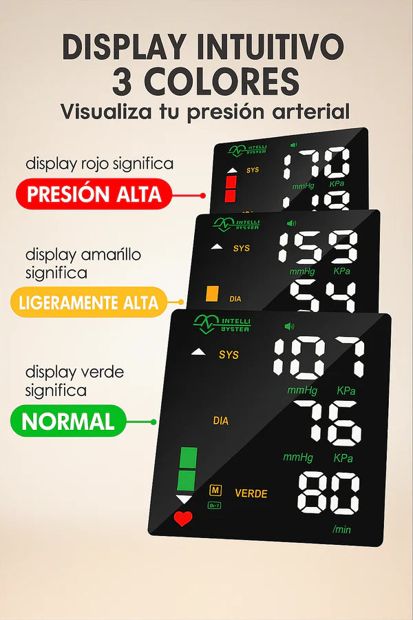 El monitor LED ofrece una visibilidad perfecta para todos, incluso en situaciones de poca luz. Esto asegura que puedas verificar tu presión arterial sin esfuerzo, en cualquier momento del día.