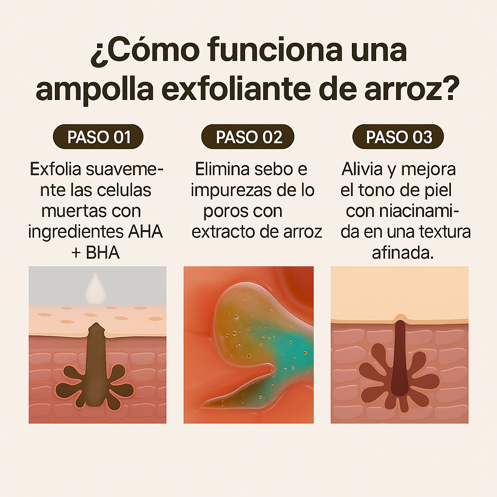 Esta ampolla es tusecreto para una piel radiante, potenciando la luminosidad y la suavidad con el poder del extracto de arroz. Actúa en segundos, brindándote unatez radiante al instante.