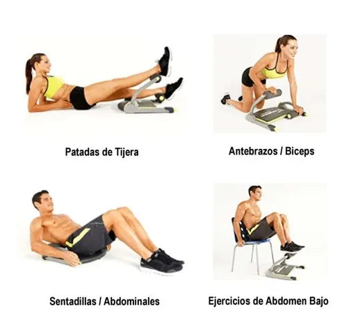 Es un equipo multifuncional para todo tu core, no solo trabaja abdomen, también ayuda a tonificar cintura, glúteos, brazos y espalda baja.